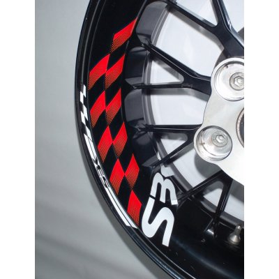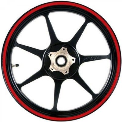 MOTOGRAFIX PROUŽKY KOL RACING červená vzdálenostní šablona 17" kola Exkluzivní univerzální sada proužků na ráfky.Design pro levé a pravé kolo samostatně.Návod na lepení součásti...