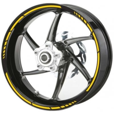 MOTOGRAFIX PROUŽKY KOL RACING reflexní žlutá vzdálenostní šablona 17" kola Exkluzivní univerzální sada proužků na ráfky.Design pro levé a pravé kolo samostatně.Návod na lepení...