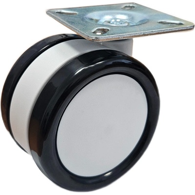 Nábytkové designové kolečko průměr 75 mm, s plotýnkou 60x60 mm, bez brzdy. Celková výška 87 mm. Použití kvalitních plastů (PU, PA6). Vhodná pro různé kusy nábytku (skříňky,...