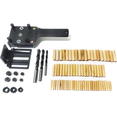 Kolíkovací přípravek s příslušenstvím, rozměry 6, 8, 10 mm MAR-POL Zařízení umožňuje vrtání děr pro upevnění kolíku o rozměrech 6, 8, 10 mm do dřeva a dřevotřísky. Tělo...