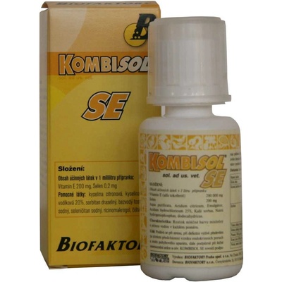 Komplex vitaminu E a selenu v tekuté formě. Složení: Vitamin E (alfa tokoferol) 200 mg Selen 200 mg Indikace: Doplňková krmná směs Kombisol SE je určena pro všechny druhy hospodářských zvířat za účelem odstranění potíží způsobených nedostatkem vitaminu E a selenu....