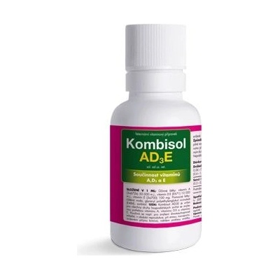 Komplex vitamínů A a D3 v tekuté formě. Indikace Kombisol AD3: Březost, laktace, špatný růst a zakrslost mláďat, snížená odolnost proti různým infekčním onemocněním, poruchy osifikace a růstu kostí, avitaminózy a hypovitaminózy A a D. U chovné drůbeže při snížené...