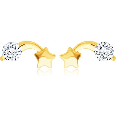 Puzetové náušnice ze žlutého 14K zlata, silueta padající hvězdy ozdobené na konci blýskavým zirkonem.