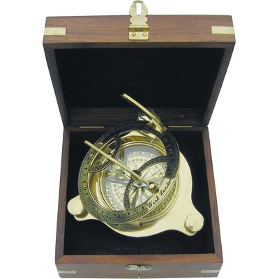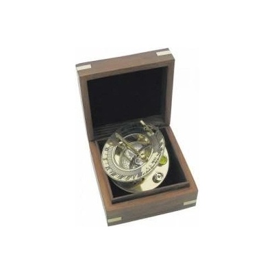 Mosazné sluneční hodiny s kompasem o průměru 8 cm v dřevěné krabičce.Retro sluneční hodiny s kompasem jistě potěší nejednoho příznivce plachetnic a moří. Materiál: mosaz,...