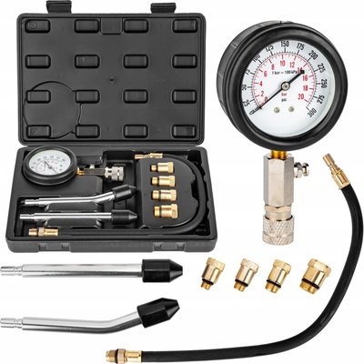 Kompresiometr – přípravek pro měření komprese motoru, pro benzínové motory – GEKO G02502. Určeno pro testování kompresního tlaku ve válcích zážehových (benzínových) motorů osobních a lehkých užitkových automobilů. Zkouška se provádí přes otvor pro zapalovací svíčku –...
