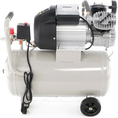 Dvouválcový kompresor ideální pro dlouhodobé kontinuální zatížení. Vysoký pracovní tlak a vzdušník o objemu padesát litrů pro bezproblémové použití i s pneumatickými nástroji.