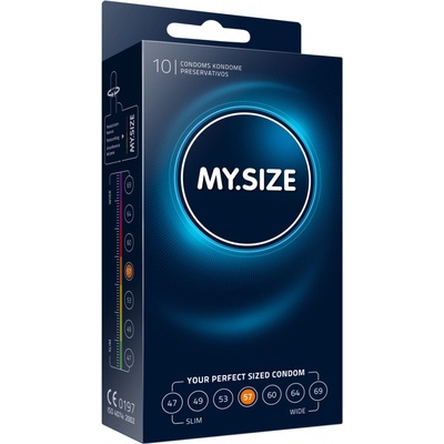 Kondomy My Size z přírodního latexu s rezervoárem jako ochrana proti nechtěnému otěhotnění a proti pohlavně přenosným chorobám. Šířka: 57 mm. Délka: 178 mm. Pro obvod penisu:...
