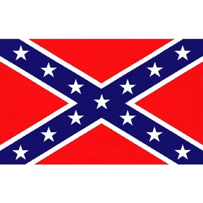 Vlajka konfederace neboli jižanská vlajka oboustranná odolná vůči povětrnostním vlivům uchycení pomocí dvou kovových oček stálobarevná Materiál: 100% polyester Velikost: 90x150cm historické vlajky Skladem odesíláme do 24h