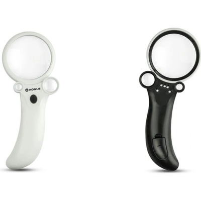 Konus LUX-65 ruční lupa se třemi čočkami se zvětšením 2.5x/25x/55x - Průměr hlavní čočky 60mm - LEDosvětlení Napájení 4 baterie LR1130 nebo AG1