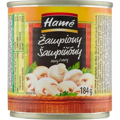 Žampiony krájené - konzervované houby v mírně slaném nálevu, sterilované.