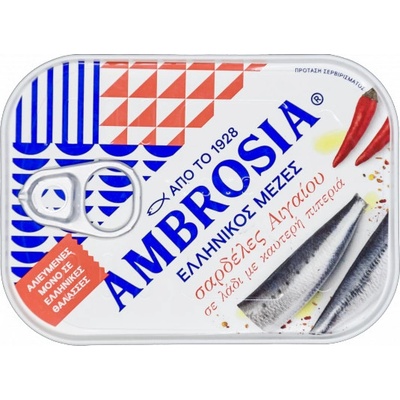 Ambrosia Sardinky v rostlinném oleji - pikantní 100g Oblíbené sardinky Ambrosia vynikají špičkovou kvalitou, čistou chutí a složením bez konzervantů. Provázejí tradiční...