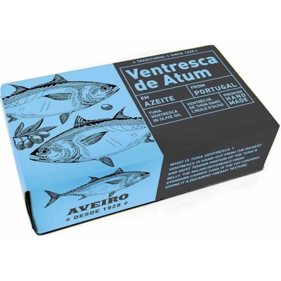 Aveiro Tuňákové filety Ventresca v olivovém oleji - ručně zpracovaná pochoutka z výběrového masa tuňáka pruhovaného Jak si nejlépe přestavit co je Ventresca? Jedná se o to...