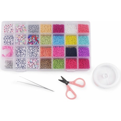 Sada rokajlů a plastových korálků v boxu potěší malé i velké korálkářky. Jsou skvělé na výrobu náramků a náhrdelníků, protože součástí celé sady je i silikonová pruženka, kovová...