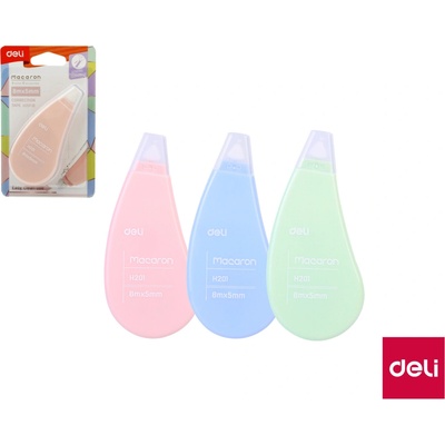 Korekční strojek 5 mm × 5 m MACARON DELI EH21606 mix netoxické, nezávadné ochranný kryt aplikátoru výborně kryje jednorázový páska je na bázi filmu, netrhá se extra hladký...
