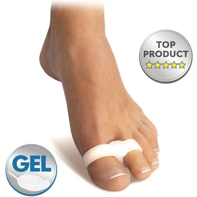Gelový korektor s dvojitým kroužkem se navléká na palec a ukazovák a dokonale fixuje v prostoru mezi prsty. Medicinální gel s minerálními oleji zajišťuje mimořádnou měkkost a pružnost výrobku.Velikost je univerzální.