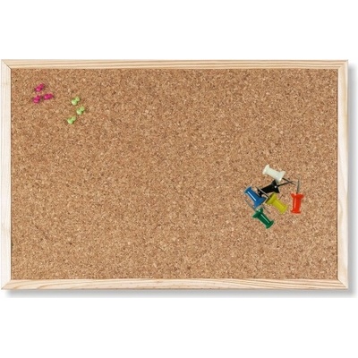 Korková tabuľa, Rozmer: 60x90 cm. Drevený rám. Ideálne na domáce a kancelárske použitie, pripínacia tabuľa, príslušenstvo: skrutky na upevnenie tabule a 6 pripínačikov.
