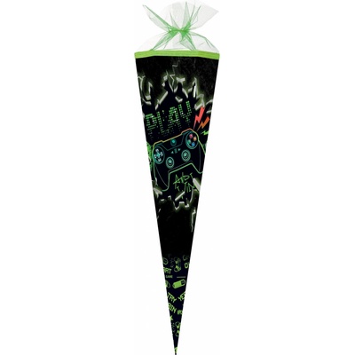 Papírový školní kornout kulatý o výšce 50 cm s tylovým lemem. Naplňte dětem kornout oblíbenými sladkostmi, oříšky, ovocem, pastelkami či drobnými hračkami, aby pro ně byl první...