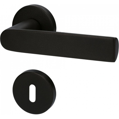Dveřní madlo rovné Vnější strana madla plochá, vnitřní strana zaoblená. Materiál : Nerez se speciální povrchovou úpravou černá ocel. Na dotek jemně hrubý metalický povrch dodává...