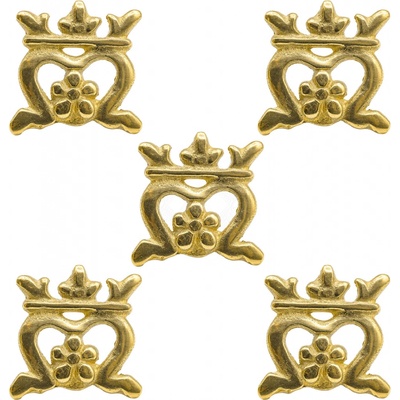 Mosazné kování na kůži Královská koruna, 15. století, 5 kusů Vyrobeno ze 100% mosazi. Celkové rozměry cca 26,9 x 25,2mm Tloušťka cca 2,6mm Na zadní straně dřík na roznýtování ø...