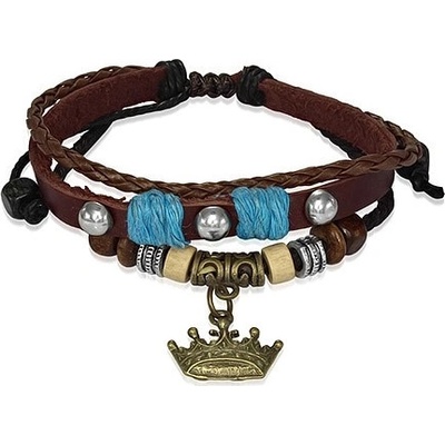 Šperky eshop kožený s dřevěnými korálky královská koruna T17.10