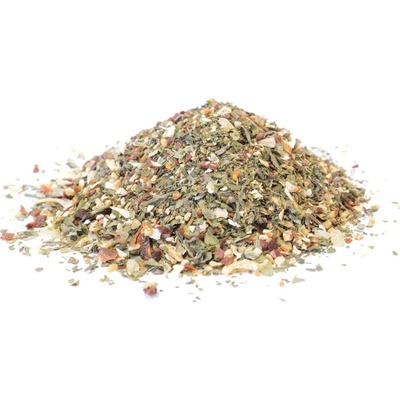 Použití v kuchyni: polévky. Složení: sůl max.15%, paprika drcená, petržel, kopr, bazalka, česnek, libeček, cibule. Bez přidaného glutamátu !!! Kořenící přípravek sypký Může...