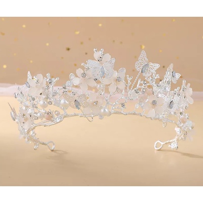 Postříbřená koruna do vlasů s krystaly, motýlky a perlami je krásným a něžným doplňkem, který září elegancí a pohádkovým šarmem. Tato koruna dodává vašemu účesu a vzhledu...