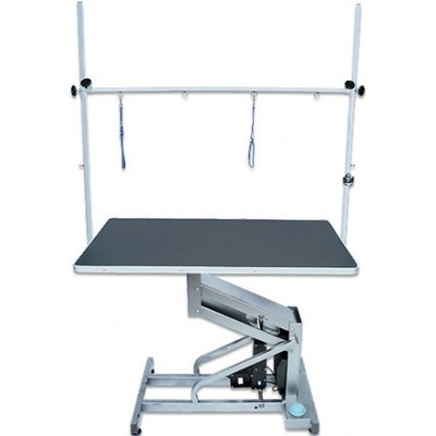Profesionální stůl na stříhání psů s elektrickým zdvihem a deskou o rozměrech 110 x 60 cm. Deska je pokrytá protiskluznou gumou. Stůl je výškově nastavitelný od 53 do 93 cm....