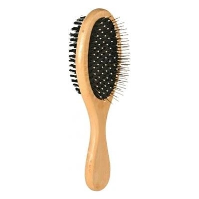 Trixie Dřevěný ovál oboustranný je oboustranný kartáč pro péči o svrchní srst a podsadu. Má nylonové a drátěné štětiny zakončené kuličkami. Vhodný na...