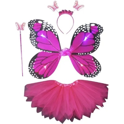 4 dílný set pro dívky se svítícími křídly. Sukýnka je v pase na gumičku, čelenka s tykadly, křídla a kouzelná hůlka. Vhodné pro věk 3-5 let.