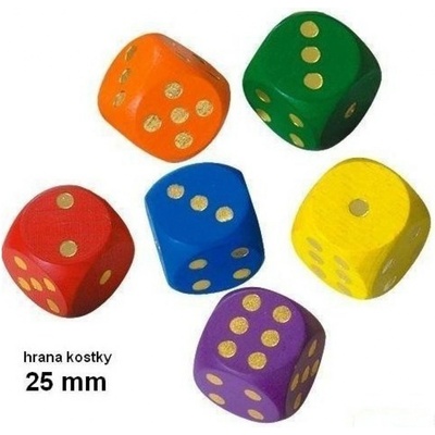 Detoa Hrací kostky barevné dřevo společenská hra 16mm 150 ks v plastové dóze 10x14cm