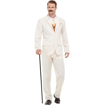 Slušivý bílý kostým vytváří autentický vzhled gentlemana z 20. let. Ideální pro tematické večírky, plesy nebo retro akce inspirované jazzovou érou. KOSTÝM OBSAHUJE: sako, kalhoty, top (imitace vesty, košile a kravaty v jednom)