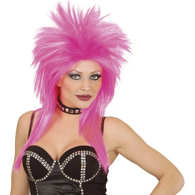 Karnevalová, růžová paruka pro rockera, rockerku nebo ke kostýmu punk. Krásný doplněk ke kostýmu rockerky na párty, karneval nebo tématickou akci.