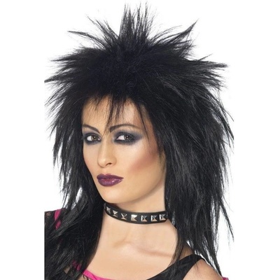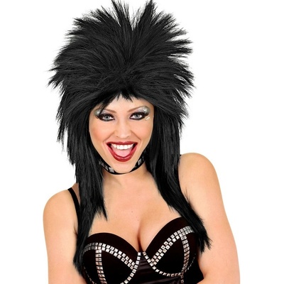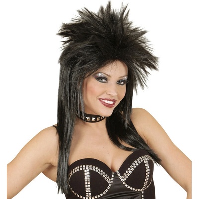 Karnevalová, černá paruka pro rockera, rockerku nebo ke kostýmu punk. Krásný doplněk ke kostýmu rockerky na párty, karneval nebo tématickou akci.