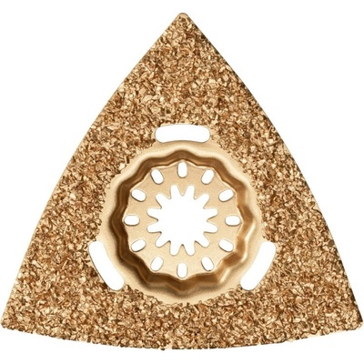 EXTOL PREMIUM 8803860 tvrdokovová rašple trojúhelníková do oscilačních brusek Materiál: HM - tvrdokov, slinutý karbid - vhodný na keramiku a stavební materiály Rozměr: 78mm...