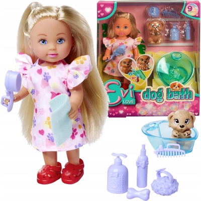 Evi Love Dog panenka do vany + pes + doplňky Toto je sada vytvořená značkou Simba , vysoce ceněná pro svůj poměr kvalita/cena. Hračka pochází ze série Evi Love, která obsahuje...