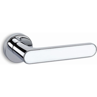Cobra Kování Model 2195 (chrom lesk/ bílá) SPECIFIKACE: - kulaté rozetové kování - povrch: chrom lesk/ bílá - vratná pružina: ANO - typ montáže: FIX-IN, vruty -...