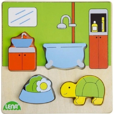 Dřevěné puzzle pro nejmenší členy Vaší rodiny. Puzzle znázorňují koupelnu, kde se nachází vana, umyvadlo, skříňky a želvička s krmením. Puzzle je rozděleno do několika částí,...