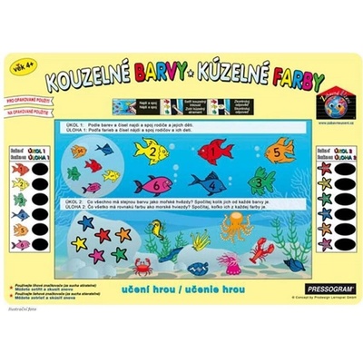 Kouzelné barvy Kouzelná tabulka oboustranná má stíratelný povrch - můžete setřít a zkusit znovu. Výsledek se zobrazí zahřáním černého pole. Použijte lihové značkovače (za sucha...