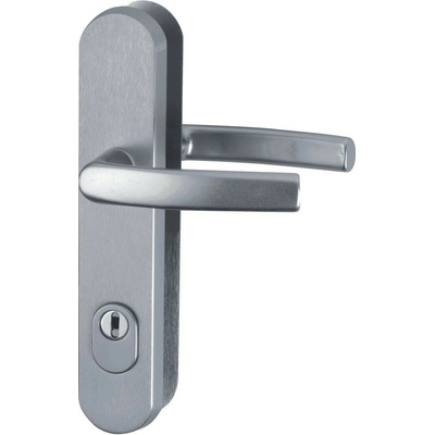 F9 - imitace nerezu Hliníkové bezpečnostní kování - klika/klika s překrytím vložky. - Certifikováno v bezpečnostní třídě RC3 dle ČSN EN 1627:2012. - Certifikát NBÚ typ 2...