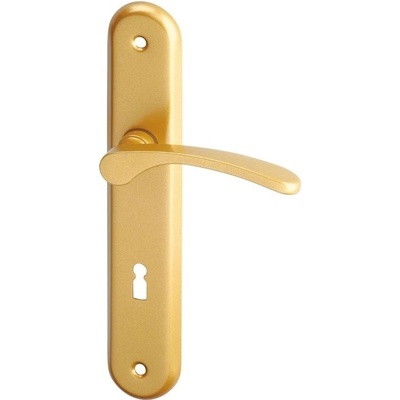 Klika VIOLA zlatá 90 mm výrobce AC-T servis Klasické dveřní kování do interiéru - štítková klika oválná na dveře. Lakovaná povrchová úprava - zlatá. Rozteč 90 mm. Klika je...