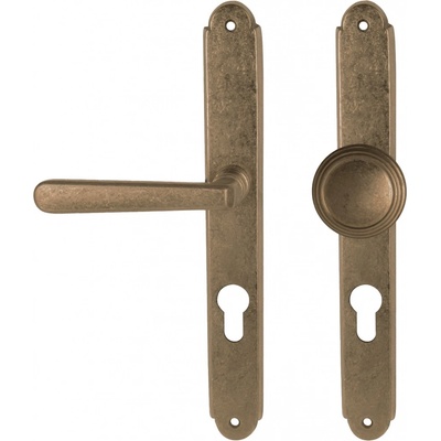 Štítová klika na interiérové dveře s kovaným štítem je vyrobena z kovaného železa a je povrchově upravena. Klika neobsahuje vratný mechanismus. Rozměry: - délka štítu: 240...