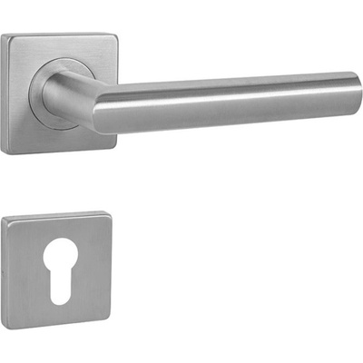 Nerezová klika MP - MODERNA - HR Nerezová klika na hranatých kovových rozetách s prodlouženou 5-ti letou zárukou. Mechanismus kliky OBSAHUJE VRATNOU PRUŽINU. Rozety jsou s...