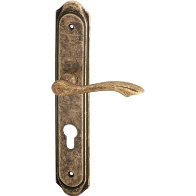 Štítová klika na vchodové a bezpečnostní dveře se zpevněným rustikálním štítem bez překrytí cylindrické vložky je vyrobena z materiálů vysoké kvality – mosaz a je povrchově...