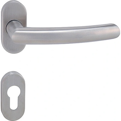 Nerezová klika na oválném štítu s prodlouženou 5-ti letou zárukou. Mechanismus kliky OBSAHUJE VRATNOU PRUŽINU.