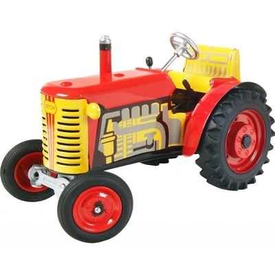 Funkční model traktoru značky Zetor na pérový strojek natahovaný klíčkem. Traktor lze řídit volantem, je vybaven převodovkou se třemi rychlostmi vpřed a zpátečkou a zabrzdit ho můžete ruční brzdou. K modelu se dají přikoupit také další zapřažitelné zařízení jako různé