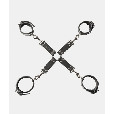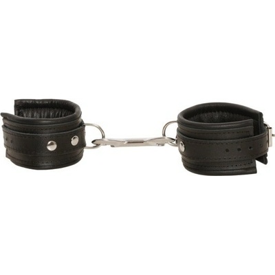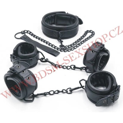 Kožená pouta, která připoutají zápěstí ke stehnům. Pouta lze uzamknout pomocí visacích zámků (není součástí balení). Pouta na ruce i stehna jsou nastavitelné pomocí přezek....