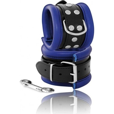 Kožená BDSM pouta na ruce a na nohy s kovovými D kroužky, které se pomocí karabinek připínají na popruhy s kroužkem. Pouta jsou nastavitelná pomocí přezky, a dají se použít...