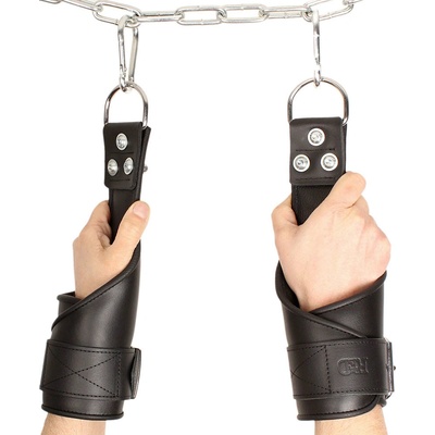 Kožená zavěšovací pouta na ruce Kožená pouta určená k zavěšení nebo spoutání rukou ve výšce. Pouta jsou vypolstrovaná pro maximální komfort. Zapínání na přezku s možností...