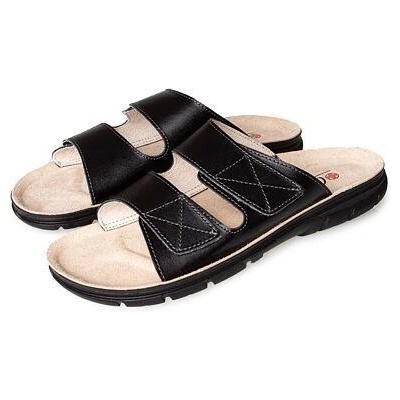 Pánské zdravotní pantofle Mediline, na vysoký nárt, na široké chodidlo, šíře H, kožené, na suchý zip, měkčená kožená stélka.