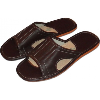 Pánské kožené domácí pantofle – otevřené sandálového typu Klasické pánské pantofle ideální na doma. Elegantní design s otevřenou špičkou, vyrobené z pravé kůže pro maximální...
